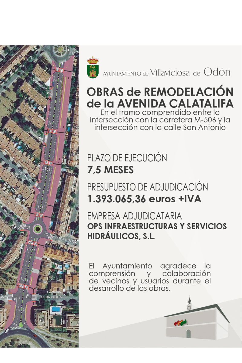 Las obras de remodelación, mejora y acondicionamiento de la avenida Calatalifa entre la intersección con la carretera M-506 y la calle San Lorenzo ya han dado comienzo.