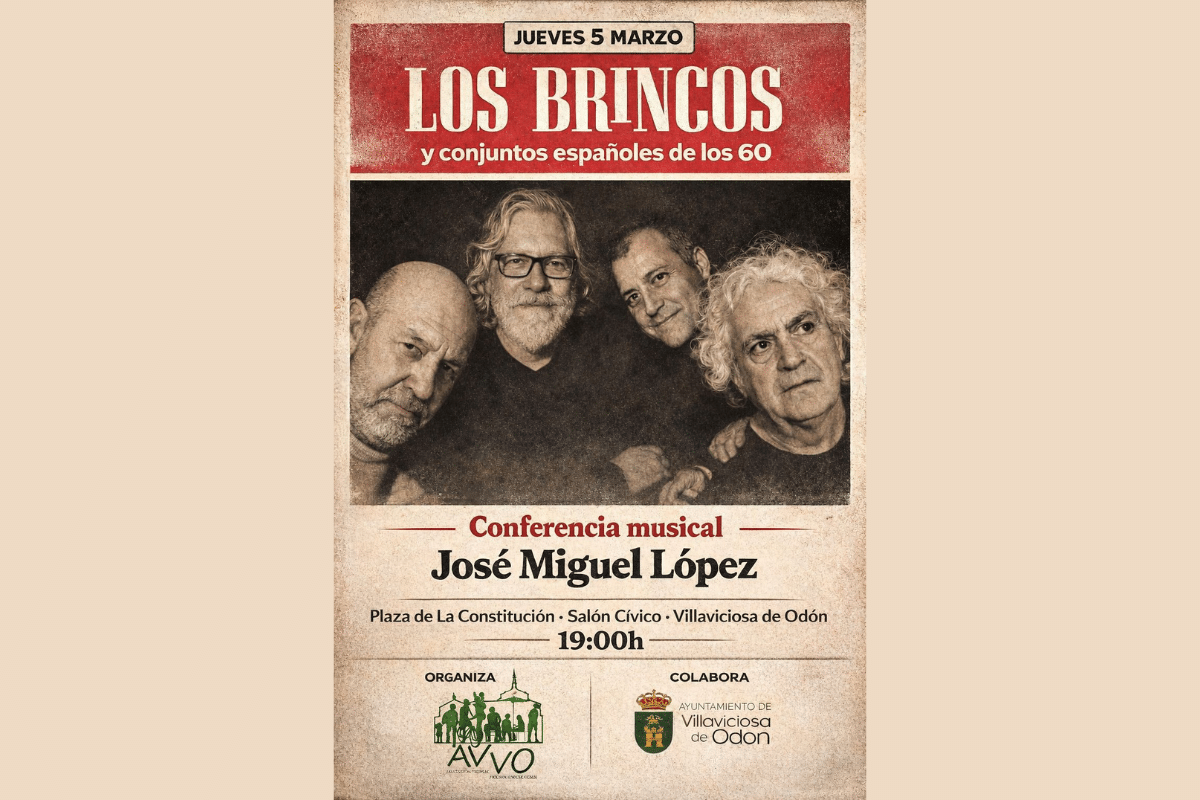 La Asociación Vecinal de Villaviciosa de Odón organiza, junto con José Miguel López y la colaboración del Ayuntamiento de Villaviciosa de Odón, la conferencia musical «Los brincos y los conjuntos españoles de los años sesenta» que tendrá lugar el jueves 5 de marzo en el Salón Cívico del Ayuntamiento a partir de las 19:00 horas.
