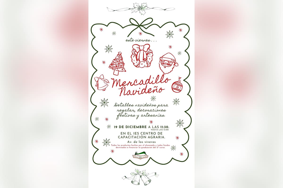 El próximo viernes 19 de diciembre habrá un mercadillo navideño en el Centro de Capacitación Agraria de 11:30 a 13:00 horas.