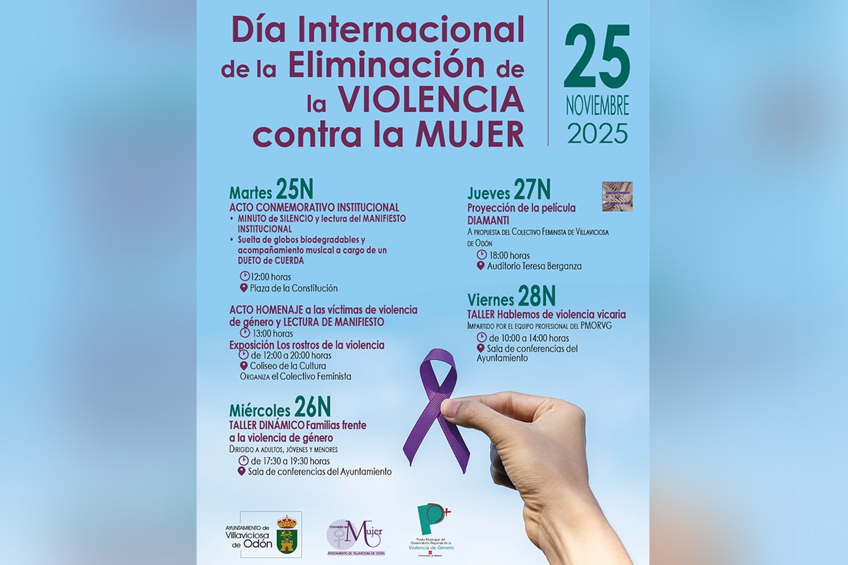 Villaviciosa de Odón programa múltiples actividades con motivo de la celebración del Día Internacional para la Eliminación de la Violencia contra las Mujeres, que tendrá lugar el próximo 25 de noviembre. Están organizadas por la concejalía de la Mujer, en colaboración con el Punto Municipal Observatorio Regional de Violencia de Género, el Colectivo Feminista de Villaviciosa de Odón y el Consejo Sectorial de la Mujer.